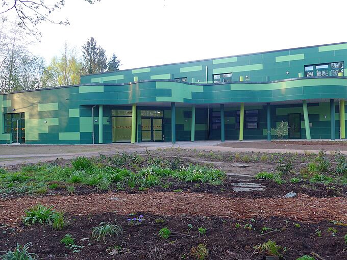 Da sich das Angebot der Eva-Lorenz-Umweltstation in den vergangenen Jahren sowohl inhaltlich als auch in Bezug auf neue Zielgruppen deutlich erweitert hatte, war die gesamte räumliche Infrastruktur an ihre Grenzen gekommen. Im Sommer 2025 konnte nun endlich der Neubau der Eva-Lorenz-Umweltstation, Tür an Tür mit der Vinhovenschule, feierlich eröffnet werden! Möglich wurde dies durch den Teilneubau der Vinhovenschule durch die Stadt Willich sowie eine großzügige Förderung der NRW-Stiftung an den NABU Willich.